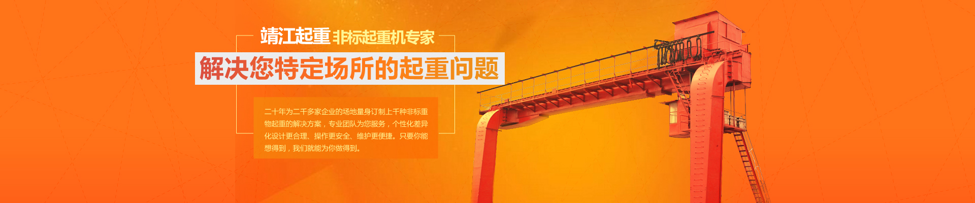 20余年專注起重機研發(fā)、制造、安裝和售后服務,為你量身定制,解決特定場所物料搬運問題。